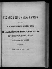 Крестьянские дворы и бобыльи участки, лежащие на крестьянской арендной и мызной земле в Вейсенштейнском комиссарском участке Вейсенштейнского уезда Эстляндской губернии по данным 1892, 1893 и 1894 года. - Б. м. : Б. и., [19--]. -[4], 92 с. : табл.. - Экз.: без обл.