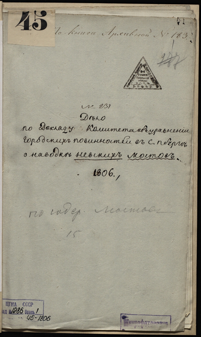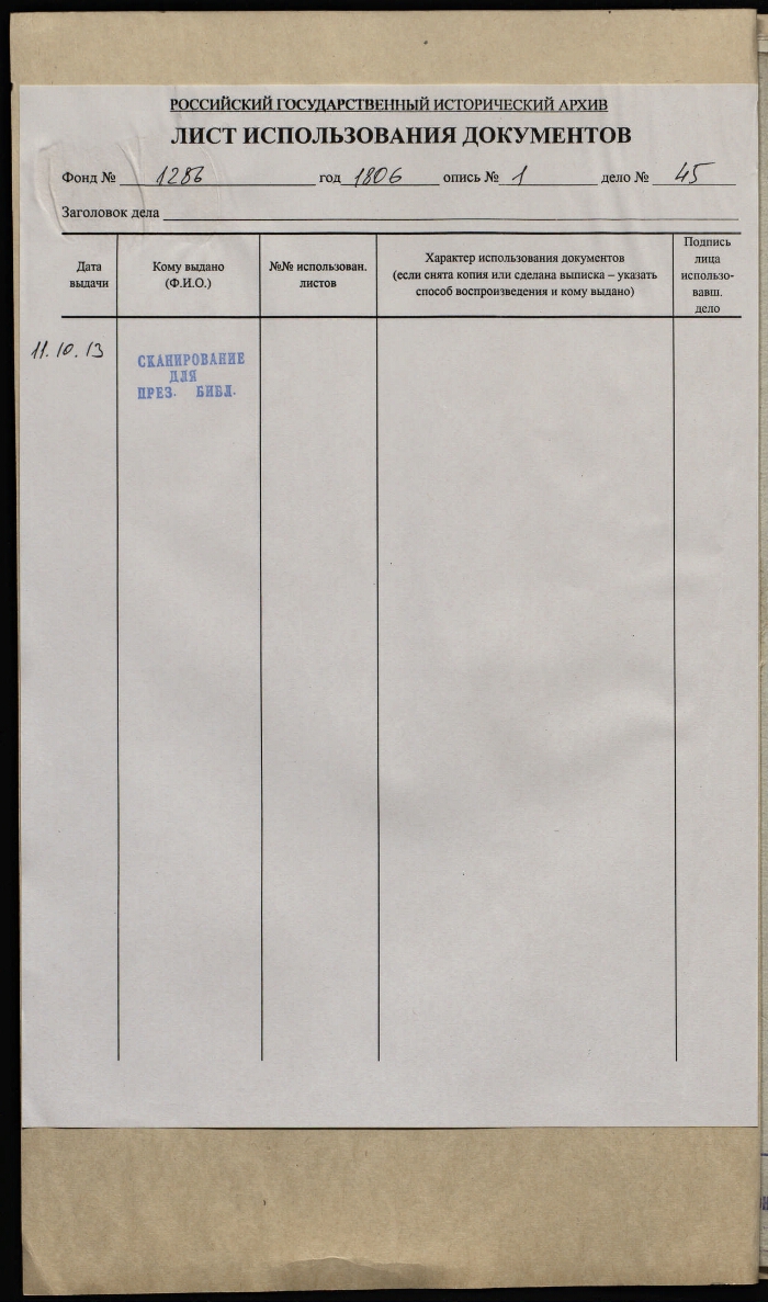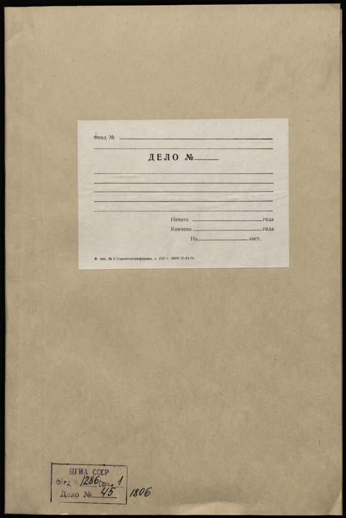 | Шифр хранения | РГИА. 1286 / 1 / 45 |