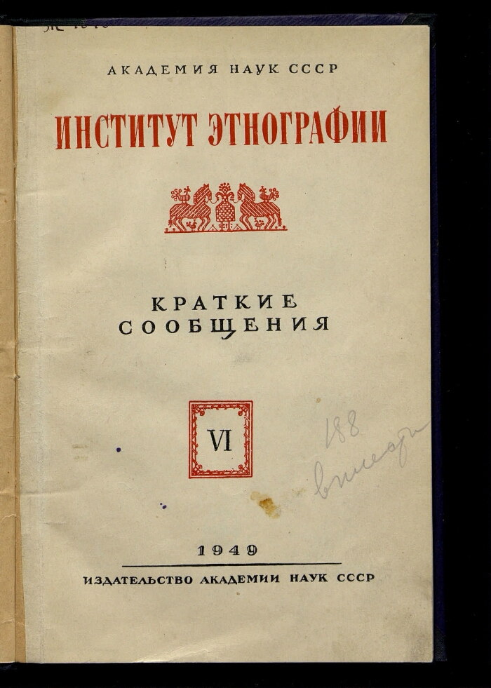 Краткие сообщения / Акад. наук СССР. Ин-т этнографии им. Н. Н. Миклухо-Маклая. - Москва ; Ленинград : Изд-во Акад. наук СССР, 1946-1963. -