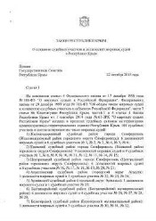 О создании судебных участков и должностей мировых судей в Республике Крым : Закон Республики Крым от 30.10.2015 № 162-ЗРК/2015. - Электронные текстовые данные (47 файла). -(Москва: ГлавНИВЦ УДП РФ , 2018). - Режим доступа: интернет-портал Президентской библиотеки. Загл. с титульной страницы. Электронная версия:Закон Республики Крым от 30.10.2015 № 162-ЗРК/2015 "О создании судебных участков и должностей мировых судей в Республике Крым".