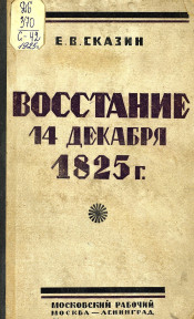 Автор Сказин Е. В. Описание Сказин , Е. В. Восстание 14 декабря 1825 года / Е. В. Сказин. - Москва ; Ленинград : Московский рабочий, 1925. - 84 с. - Краткий библиогр. указ.: с. 81 - 84 . 1. Власть (коллекция). 2. Народ (коллекция). 3. Декабристы. ББК 63.3(2)521-425.3 Источник электронной копии: ПБМесто хранения оригинала: ГПИБ Издательство Московский рабочий Объект в каталогах Россия в 1 пол. XIX в. В коллекциях Декабристы → Декабристы в истории России → Исследования по декабризму → Общие исследования