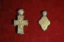 Ч. 3: Иконки и кресты наперсные. XII - XIII вв. Византия. Новгород : [альбом фотографий]. - Электронные графические данные ( 33 файла : 118,0 МБ). - Великий Новгород, 10 марта, 26 апреля 2012 года. - Режим доступа: интернет-портал Президентской библиотеки имени Б. Н. Ельцина. Заглавие из сопроводительного документа. Дата съемки: 10.03.2012, 26.04.2012. В третью часть альбома включены: обложка-заставка; 13 заставок: с содержанием альбома, названиями разделов; 19 фотографий наперсных иконок и крестов. На фотографиях представлены иконки и кресты с изображениями библейских сцен, Распятия, Голгофского креста, Богоматери, Святого Николая, Святого Георгия и изображениями других святых. Наперсные иконы и кресты предназначались для ношения на груди (персях) поверх одежды священнослужителями, высшим духовенством, князьями и царем. Кресты и иконки могли являться энколпионами, т.е. небольшими ковчежцами для хранения частицы просфоры или мощей святых. - Использованы материалы сайта: "Энциклопедический словарь Брокгауза и Ефрона" (URL: https://ru.wikisource.org/wiki/)