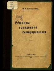 Реформа городского самоуправления / А. О. Немировский. - Санкт-Петербург : типография В. Безобразова и К° (влад. Н. Зандман), 1911. - XI, [3], 172 с. : табл. ; 25 см. - Библиография в подстрочных примечаниях. - Экземпляр ГПИБ дефектный: обложка, титульный лист, с. I-XI отсутствуют.