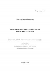 Смертность от внешних причин в России в постсоветский период : автореферат диссертации на соискание ученой степени кандидата социологических наук : специальность 22.00.03 / Юмагузин Валерий Валерьевич ; [Нац. исслед. ун-т "Высш. шк. экономики"]. - Москва, 2013. -30 с. ; 21 см. - Библиогр.: с. 29-30 (8 назв.). . -100 экз.