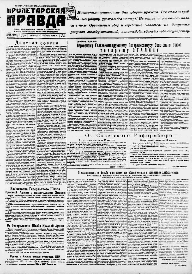 Пролетарская правда. 1945, № 161 (7829) (17 авг.).