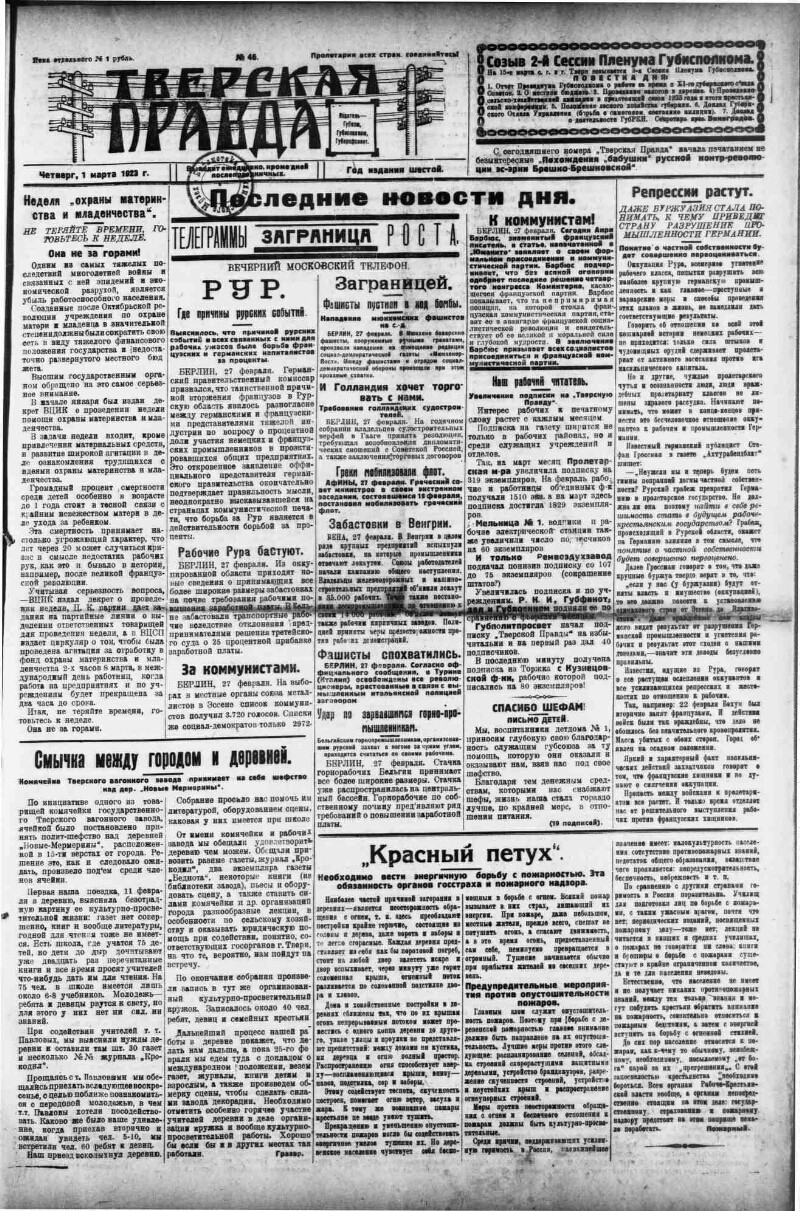 Тверская правда. 1923, № 46 (1 марта)