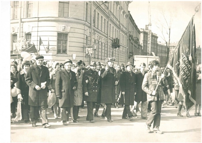 Преподаватели и студенты Ленинградского строительно-архитектурного техникума на демонстрации. 1970-е гг.