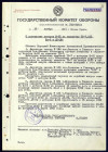Постановление ГКО СССР № 914 о назначении Панфилова А. П. уполномоченными Верховного командования СССР по связи с чехословацкой военной миссией и по реализации советско - чехословацкого военного соглашения от 27 сентября 1941 г. (справка), с приложением мандата