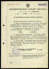 Постановление ГКО СССР № 1647 с о восстановлении производства швейных машин и малолитражных двигателей, с приложением записки Молотова В. М., Вознесенского Н. А. Сталину И. В. и перечня вопросов, вынесенных на утверждение Сталина И. В.