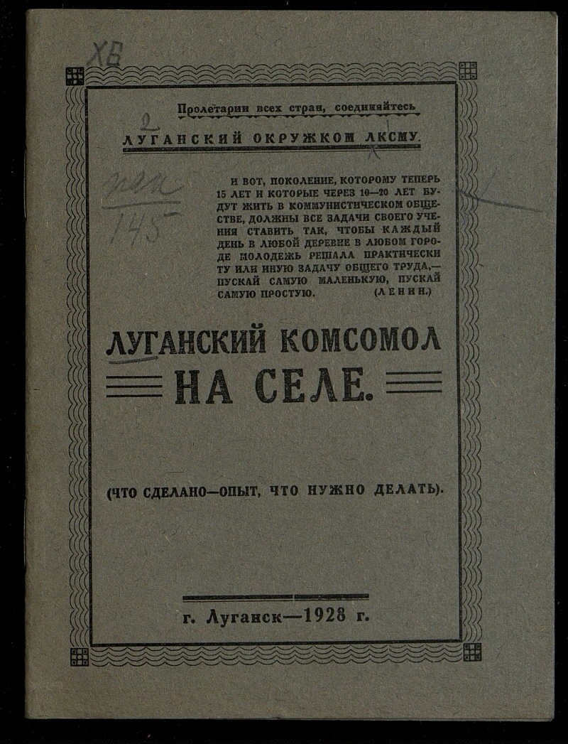 Сборник постановлений ЦК ВКП(б) и ЦК КП(б)У об очередных задачах комсомольской работы и задачах партийного руководства. Луганск : Друк. вид-ва "Луганск. Правда", 1929.
