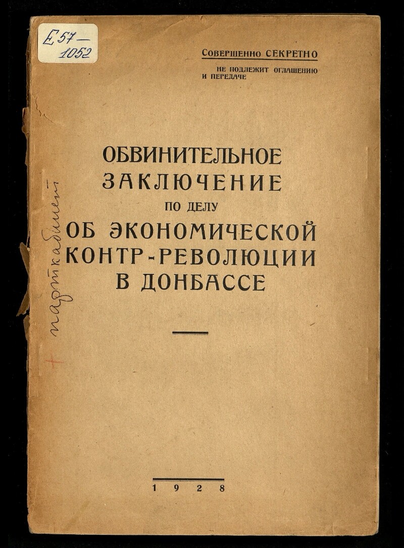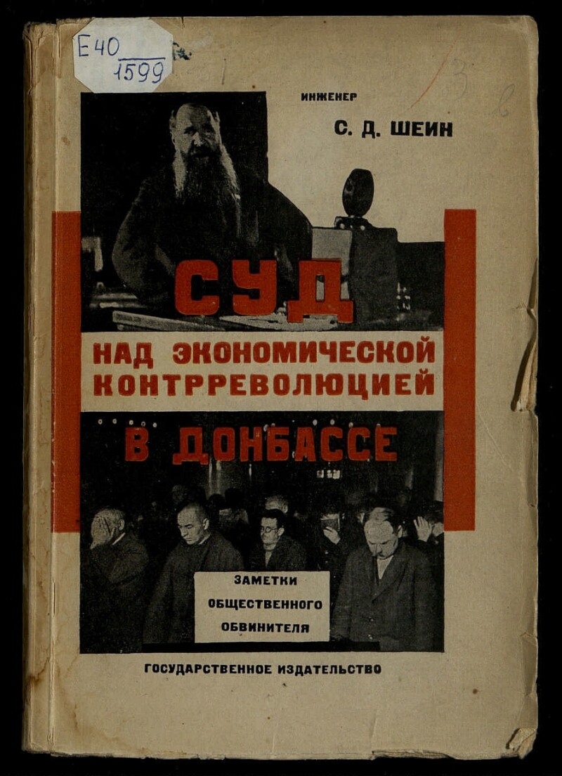 Шеин, Сергей Дмитриевич. Суд над экономической контр-революцией в Донбассе. Москва : ОГИЗ, Государственное изд-во, 1928; Ленинград.Обвинительное заключение по делу об экономической контр-революции в Донбассе