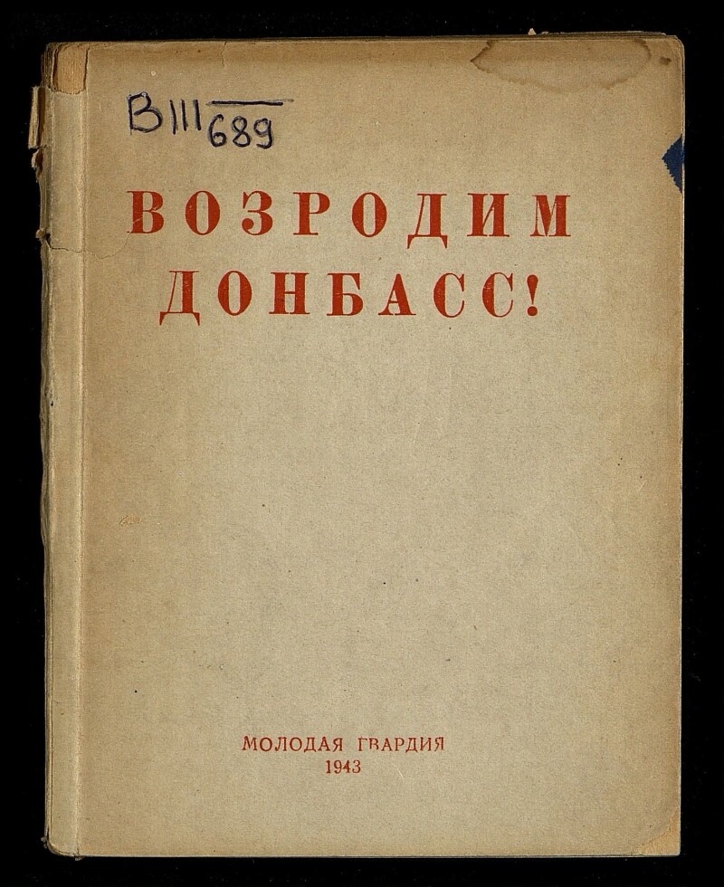 Возродим Донбасс!. [Москва] : Изд-во ЦК ВЛКСМ "Молодая гвардия", 1943.Возродим родной Донбасс