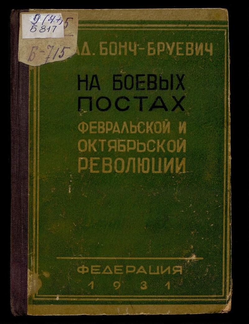 Бонч-Бруевич, Владимир Дмитриевич (1873-1955). На боевых постах Февральской и Октябрьской революции. Москва : издательство "Федерация", 1931.