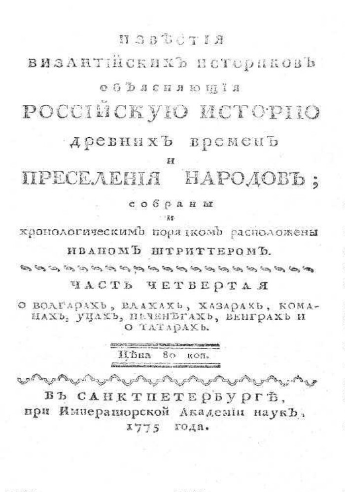 Ч.4: О волгарах, влахах, хазарах, команах, уцах, печенегах, венграх и о татарах. 1775.