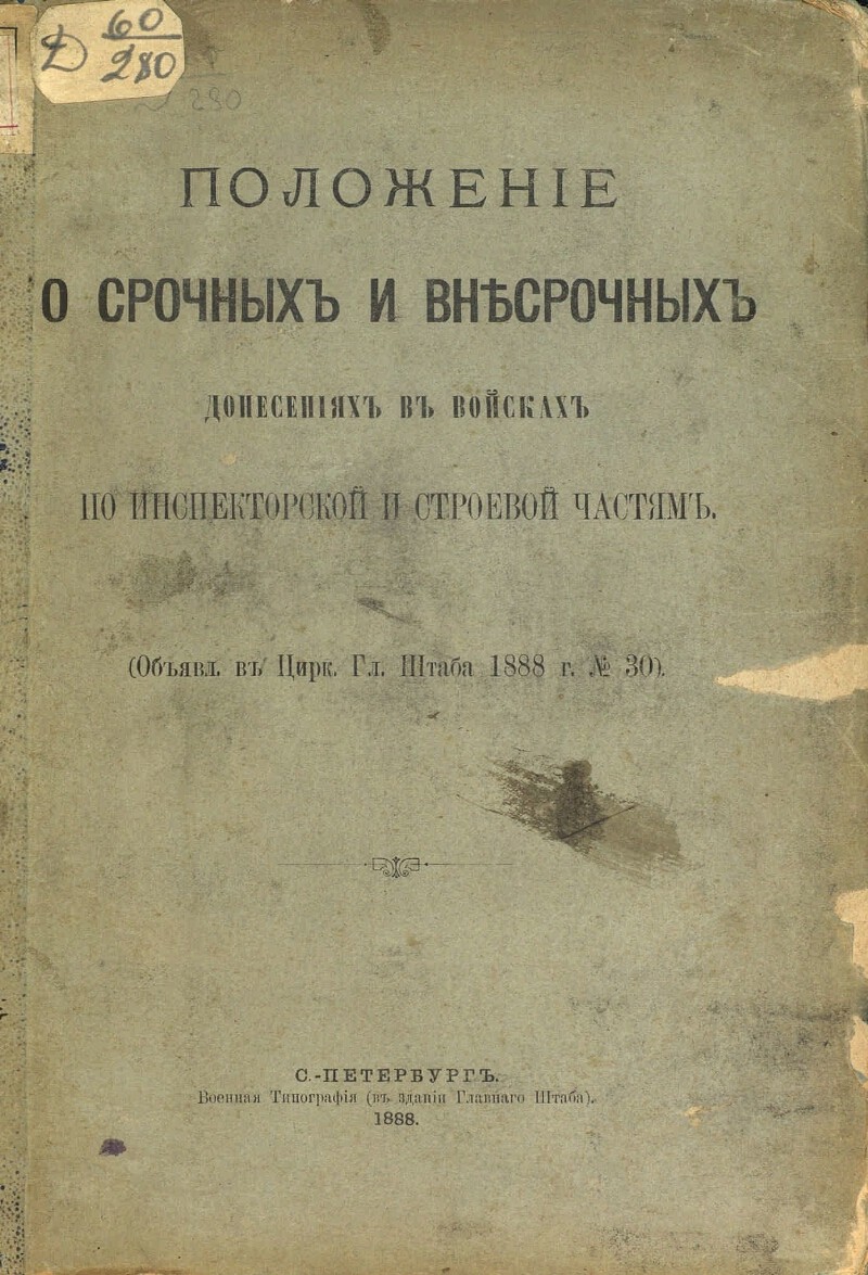 Положение о срочных и внесрочных донесениях в войсках по инспекторской и строевой частям.