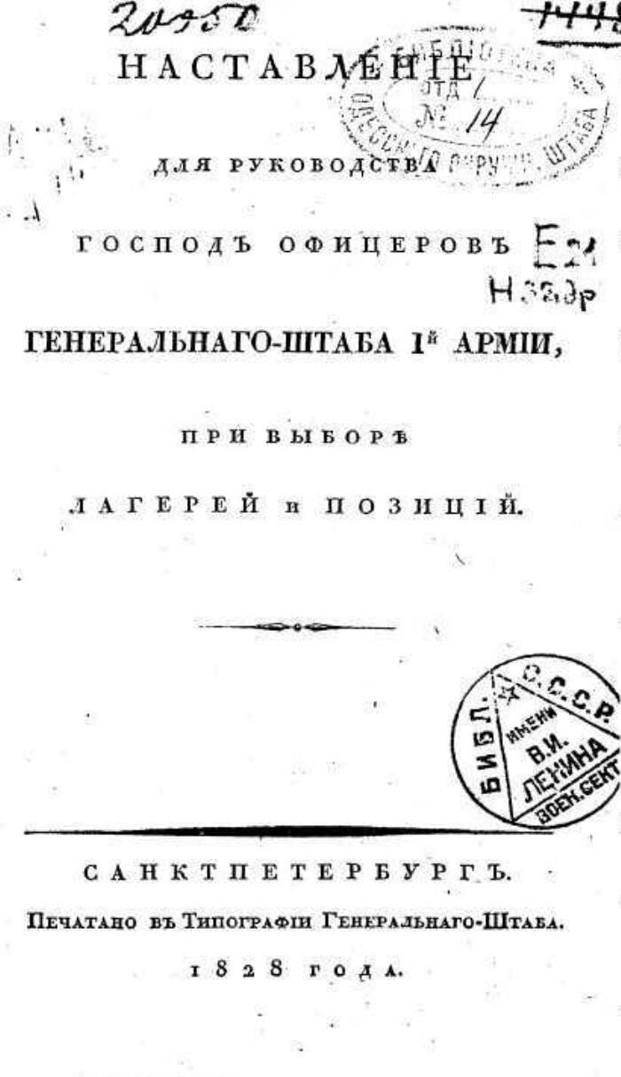 Наставление для руководства господ офицеров Генерального штаба 1 Армии при выборе лагерей и позиций