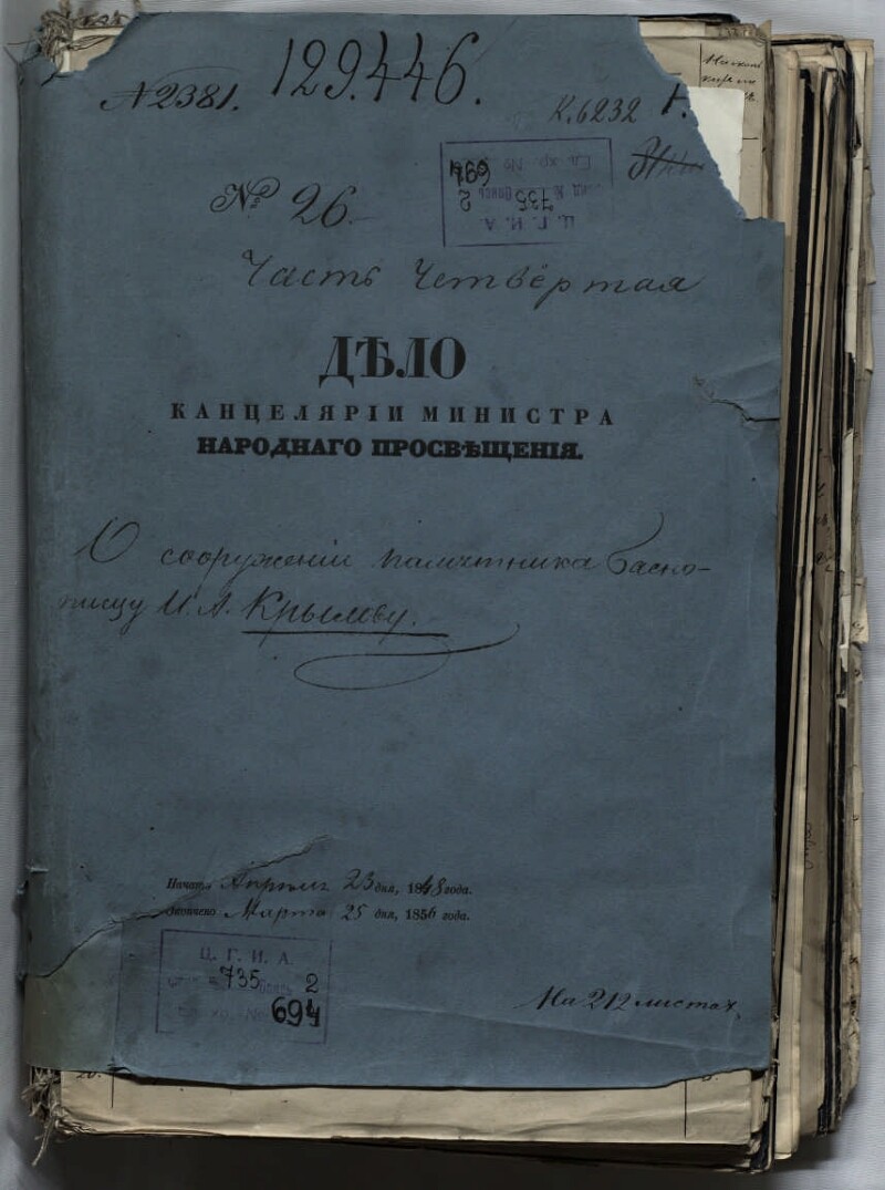 Дело о сооружении памятника баснописцу И. А. Крылову.